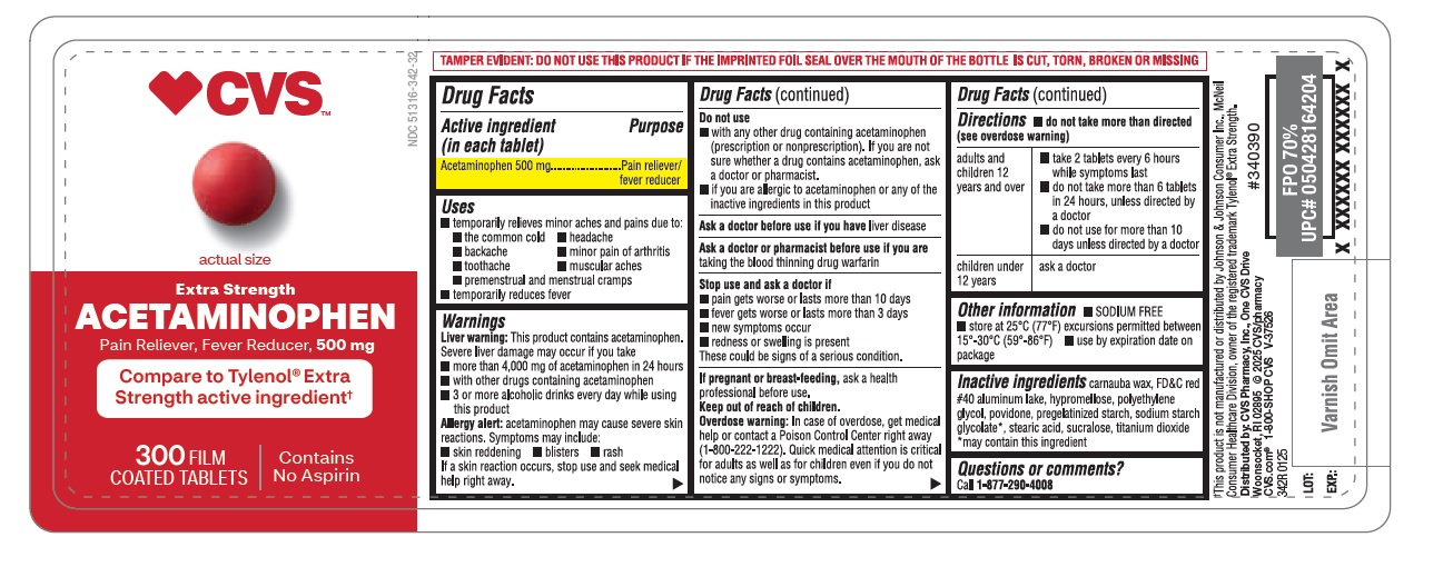The following 2 images provide visual information about the product associated with Acetaminophen NDC 51316-342 by Cvs Pharmacy, Inc., such as packaging, labeling, and the appearance of the drug itself. This resource could be helpful for medical professionals, pharmacists, and patients seeking to verify medication information and ensure they have the correct product.