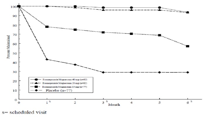 This text includes information on different dosages of Esomeprazole Magnesium (10 mg, 20 mg, and 40 mg) as well as a placebo for a study with a total of 245 participants. The study likely involved scheduled visits for the participants.*