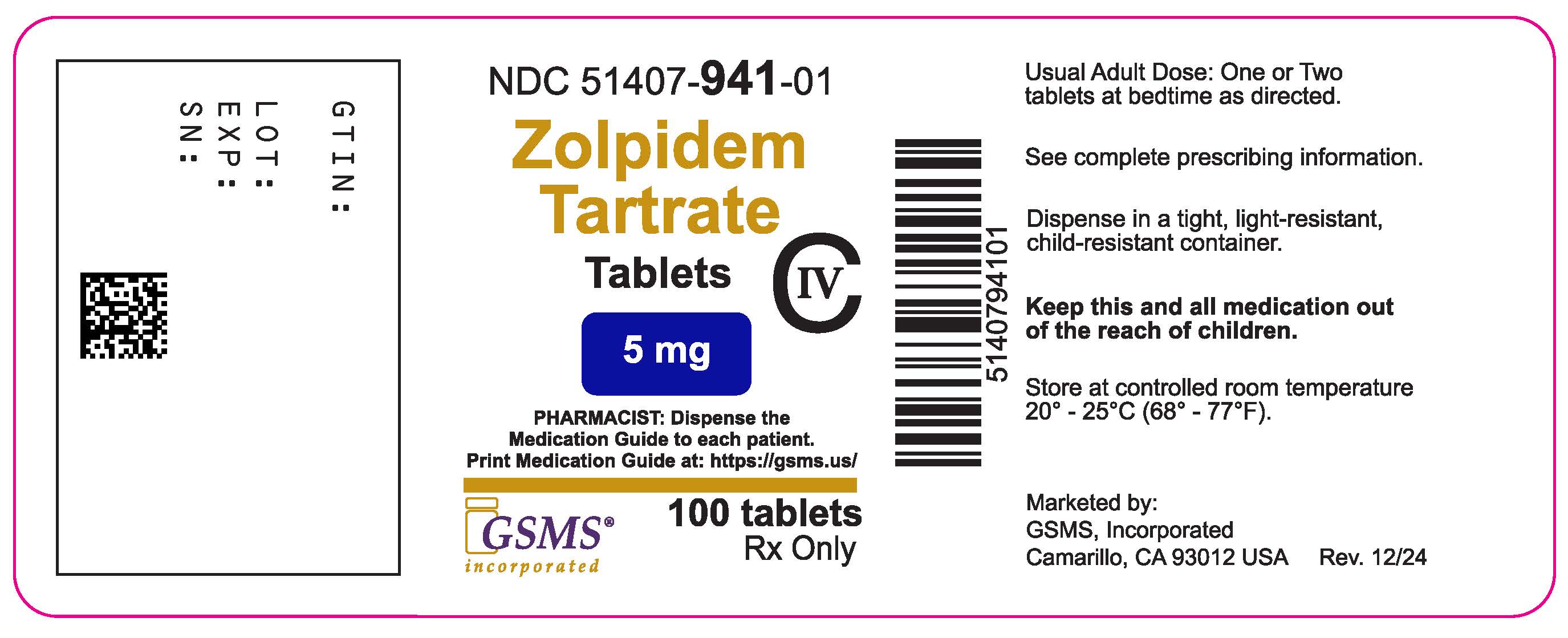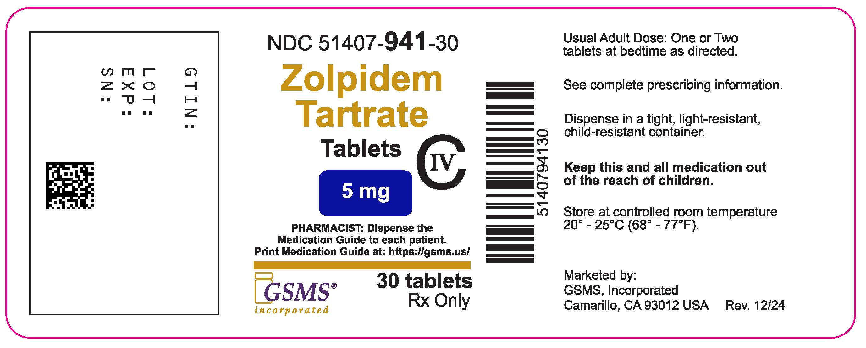 - IMAGE NAME IMAGE DELETE IMAGE REFERENCED 51407-941-01LB - Zolpidem Tartrate - 5 mg - Rev. 1224.jpg - 51407 941 01LB Zolpidem Tartrate 5 mg Rev. 1224