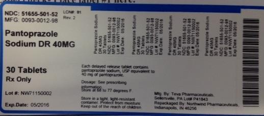 The following image provide visual information about the product associated with Pantoprazole Sodium DR NDC 51655-501 by Northwind Pharmaceuticals, Llc, such as packaging, labeling, and the appearance of the drug itself. This resource could be helpful for medical professionals, pharmacists, and patients seeking to verify medication information and ensure they have the correct product.