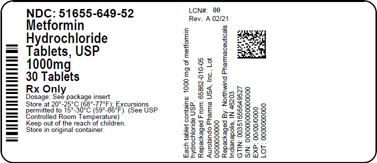 The following 2 images provide visual information about the product associated with Metformin Hydrochloride NDC 51655-649 by Northwind Pharmaceuticals, such as packaging, labeling, and the appearance of the drug itself. This resource could be helpful for medical professionals, pharmacists, and patients seeking to verify medication information and ensure they have the correct product.