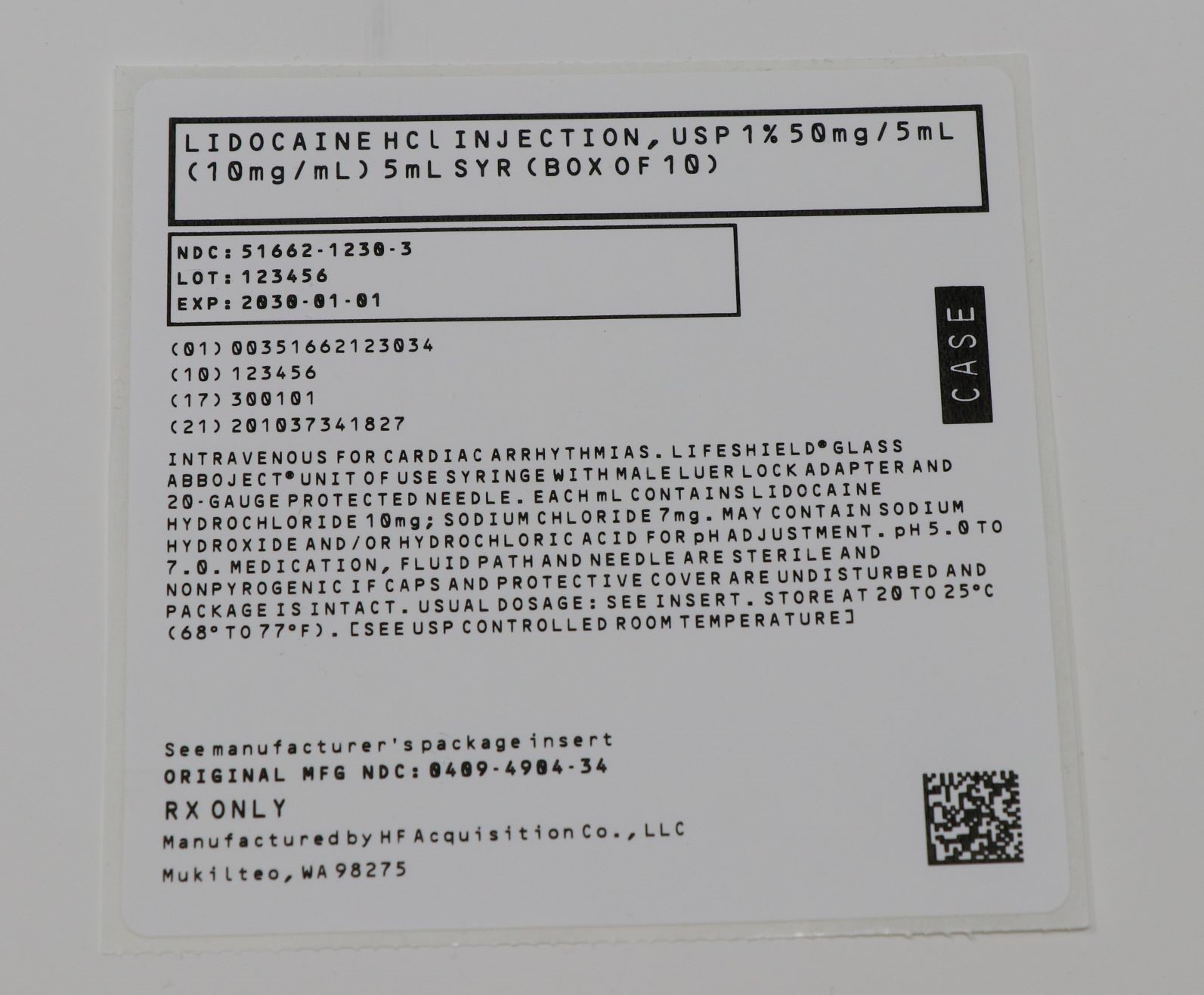 The following 10 images provide visual information about the product associated with Lidocaine Hci NDC 51662-1230 by Hf Acquisition Co. Llc, Dba Health First, such as packaging, labeling, and the appearance of the drug itself. This resource could be helpful for medical professionals, pharmacists, and patients seeking to verify medication information and ensure they have the correct product.