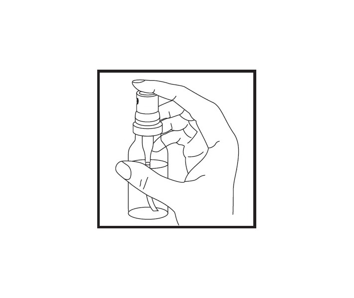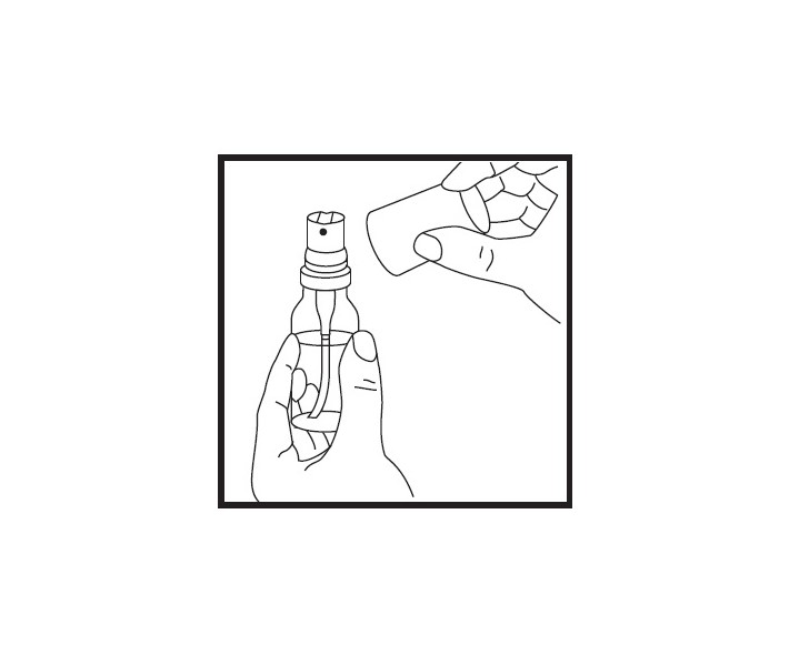 This is a description of a bottle with a grooved button to help position your finger correctly on the bottle, even in low light conditions. The bottle has a black nozzle and an orange-coated see-thru cap.*
