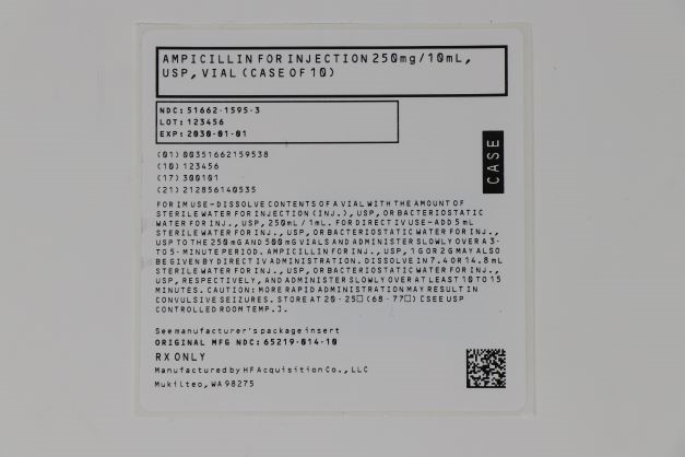 The following 9 images provide visual information about the product associated with Ampicillin NDC 51662-1595 by Hf Acquisition Co Llc, Dba Healthfirst, such as packaging, labeling, and the appearance of the drug itself. This resource could be helpful for medical professionals, pharmacists, and patients seeking to verify medication information and ensure they have the correct product.
