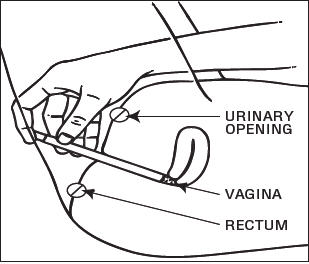 This appears to be a list of anatomical structures in the pelvic region of the body: the urinary opening, the vagina, and the rectum.*