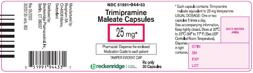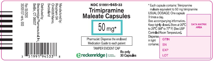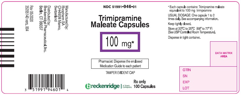 The following 7 images provide visual information about the product associated with Trimipramine Maleate NDC 51991-946 by Breckenridge Pharmaceutical, Inc., such as packaging, labeling, and the appearance of the drug itself. This resource could be helpful for medical professionals, pharmacists, and patients seeking to verify medication information and ensure they have the correct product.