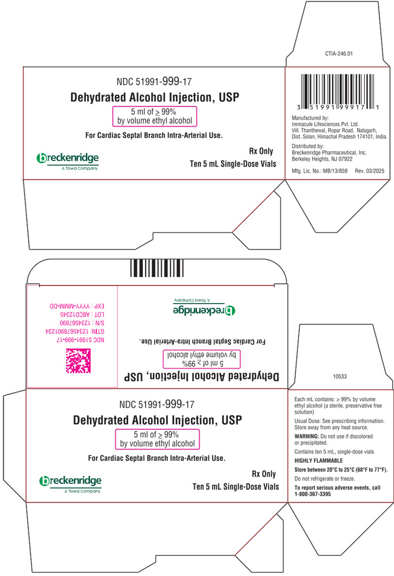 Injection: 5 mL of ethyl alcohol ≥ 99% by volume as a clear, colorless liquid in a single-dose glass vial.