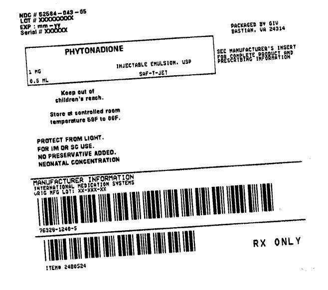 The following 5 images provide visual information about the product associated with Phytonadione NDC 52584-043 by General Injectables & Vaccines, Inc, such as packaging, labeling, and the appearance of the drug itself. This resource could be helpful for medical professionals, pharmacists, and patients seeking to verify medication information and ensure they have the correct product.