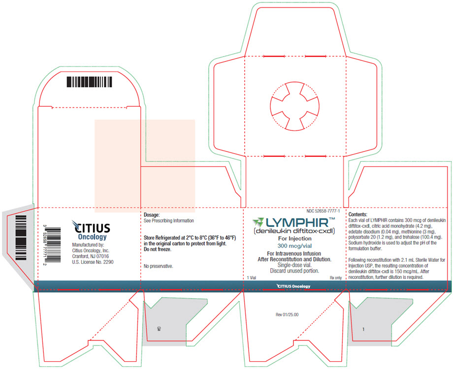 LYMPHIR (denileukin diftitox-cxdl) for injection is supplied as a sterile, white, lyophilized cake for reconstitution in a single-dose vial containing 300 mcg denileukin diftitox-cxdl. Each carton contains one vial: