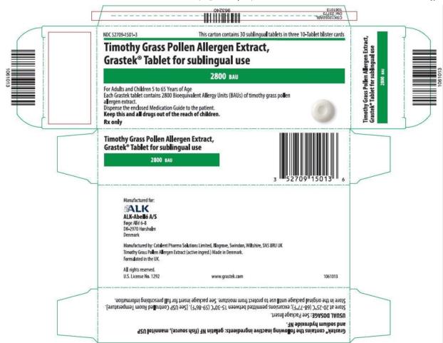 The following image provide visual information about the product associated with Grastek NDC 52709-1501 by Alk-abello A S, such as packaging, labeling, and the appearance of the drug itself. This resource could be helpful for medical professionals, pharmacists, and patients seeking to verify medication information and ensure they have the correct product.