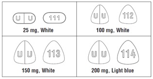 Lamotrigine tablets USP are supplied for oral administration as 25 mg, 100 mg, 150 mg or 200 mg tablets. Each tablet contains the labeled amount of lamotrigine and the following inactive ingredients: lactose monohydrate, magnesium stearate, microcrystalline cellulose, povidone and sodium starch glycolate. In addition, the 200 mg tablets contain FD&C Blue No. 2 Lake.