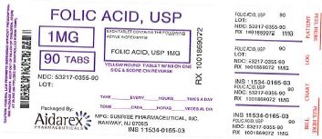 The following 2 images provide visual information about the product associated with Folic Acid NDC 53217-355 by Aidarex Pharmaceuticals Llc, such as packaging, labeling, and the appearance of the drug itself. This resource could be helpful for medical professionals, pharmacists, and patients seeking to verify medication information and ensure they have the correct product.