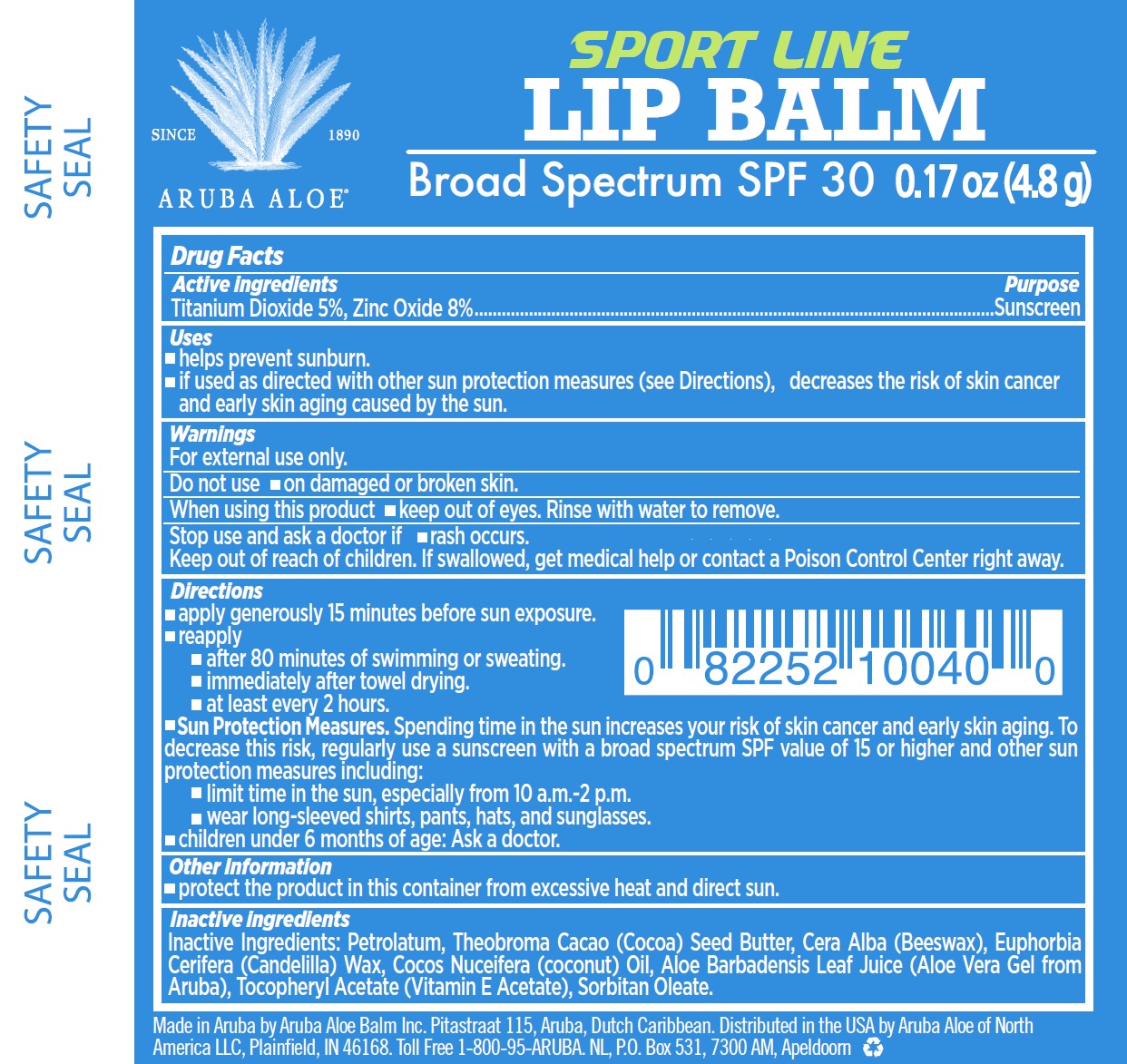 Aruba Aloe Sport Line Lip Balm Broad Spectrum Spf 30 Product Label