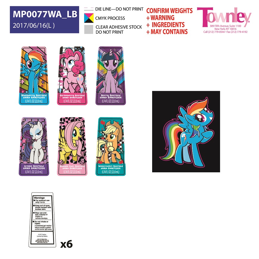 The following image provide visual information about the product associated with My Little Pony Hand Sanitizer 6 Pack NDC 54860-084 by Shenzhen Lantern Science Co., Ltd., such as packaging, labeling, and the appearance of the drug itself. This resource could be helpful for medical professionals, pharmacists, and patients seeking to verify medication information and ensure they have the correct product.