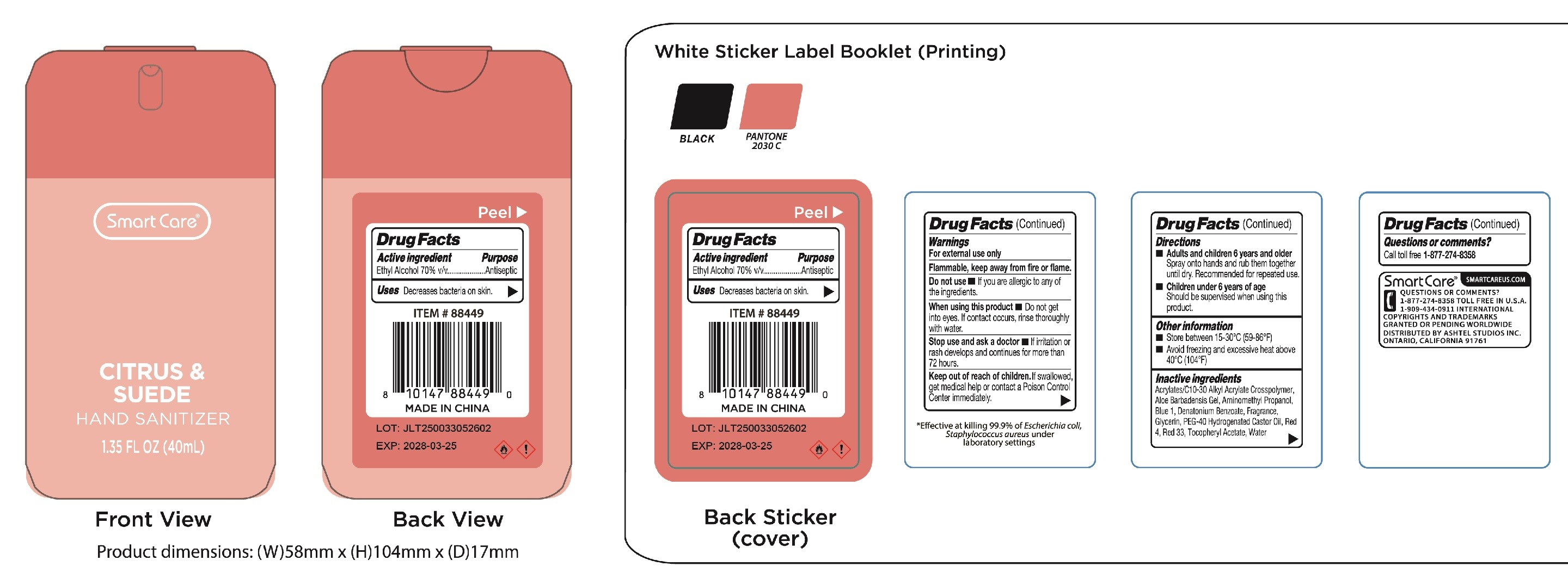 The following image provide visual information about the product associated with Smart Care Luxury Hand Sanitizer 1.35oz - Citrus Suede NDC 54860-464 by Shenzhen Lantern Scicence Co.,ltd., such as packaging, labeling, and the appearance of the drug itself. This resource could be helpful for medical professionals, pharmacists, and patients seeking to verify medication information and ensure they have the correct product.