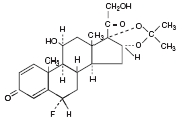 6α-fluoro-11β 16α,17,21-tetrahydroxypregna-1,4-diene-3,20-dione cyclic 16,17-acetal with acetone (USAN).
