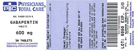 The following 8 images provide visual information about the product associated with Gabapentin NDC 54868-5219 by Physicians Total Care, Inc., such as packaging, labeling, and the appearance of the drug itself. This resource could be helpful for medical professionals, pharmacists, and patients seeking to verify medication information and ensure they have the correct product.