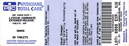 The following image provide visual information about the product associated with Lithium Carbonate NDC 54868-5239 by Physicians Total Care, Inc., such as packaging, labeling, and the appearance of the drug itself. This resource could be helpful for medical professionals, pharmacists, and patients seeking to verify medication information and ensure they have the correct product.