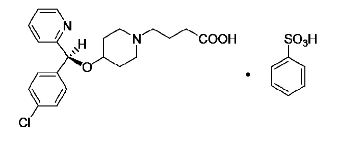 Bepotastine besilate is designated chemically as (+) -4-[[(S)-p-chloro-alpha -2-pyridylbenzyl]oxy]-1-piperidine butyric acid monobenzenesulfonate. The chemical structure for bepotastine besilate is: