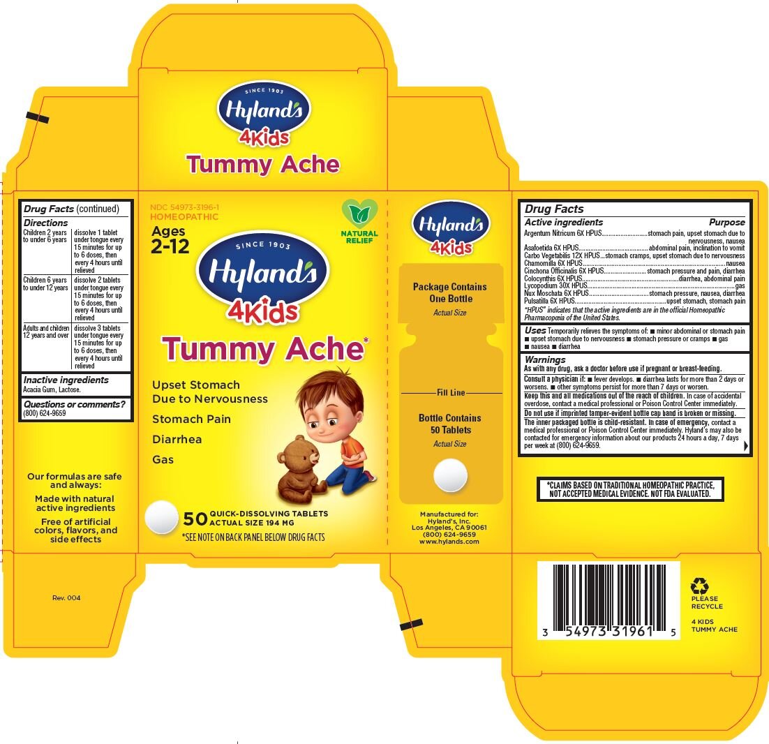 The following image provide visual information about the product associated with Tummy Ache 4kids NDC 54973-3196 by Hyland's Inc., such as packaging, labeling, and the appearance of the drug itself. This resource could be helpful for medical professionals, pharmacists, and patients seeking to verify medication information and ensure they have the correct product.