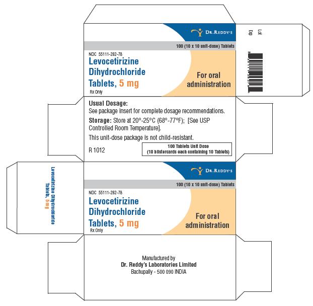 The following 3 images provide visual information about the product associated with Levocetirizine Dihydrochloride NDC 55111-282 by Dr.reddy's Laboratories Ltd., such as packaging, labeling, and the appearance of the drug itself. This resource could be helpful for medical professionals, pharmacists, and patients seeking to verify medication information and ensure they have the correct product.