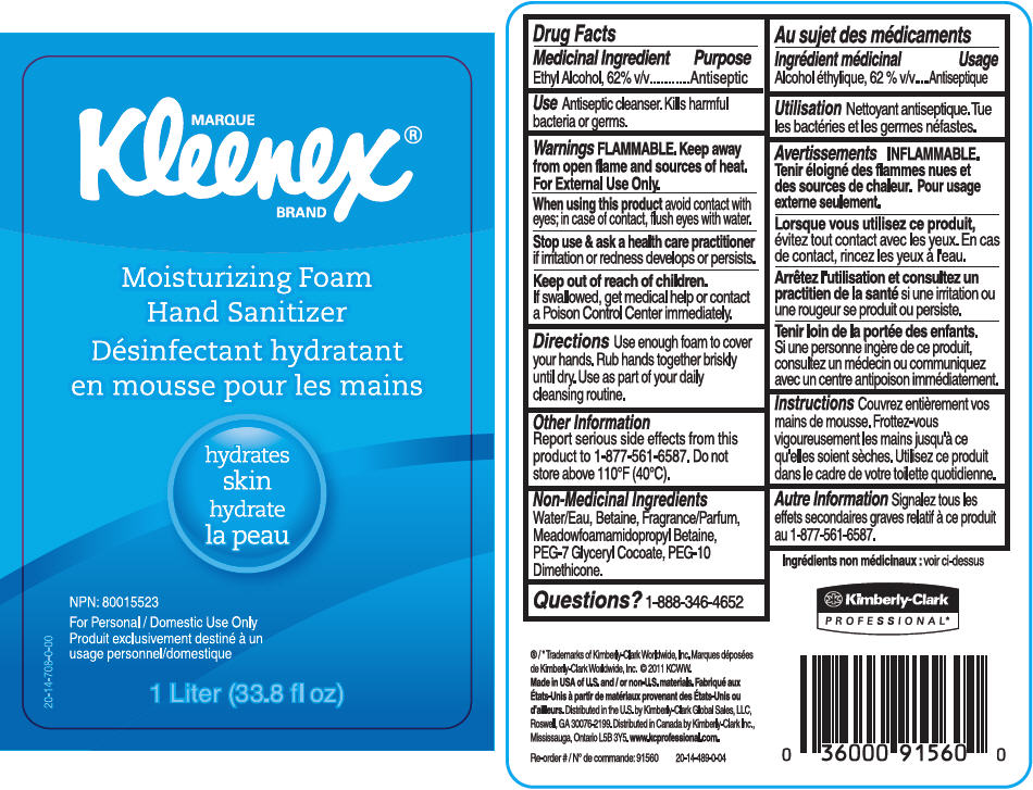 This is a description of a hand sanitizer product named Moisturizing Foam Hand Sanitizer. The text includes the brand name Marque, a reference NPN number, and directions for use. The product is for personal/domestic use only, and it must be kept away from children. If allergic reactions occur, users should stop using the product and contact a healthcare practitioner immediately. The description includes information on how to use the product, including how to apply the foam and rub the hands until dry. The product is an antiseptic cleanser that kills bacteria and should be used externally only. The text also includes the name of the manufacturer, Kimberly-Clark, and contact information for reporting serious side effects.*
