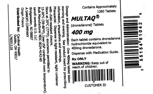 This text contains various pieces of information related to a medication called MULTAQ. It includes details regarding the dosage and composition of the tablet, as well as the number of tablets included in the container. However, the text is somewhat incomplete, and it's difficult to provide more specific information.*