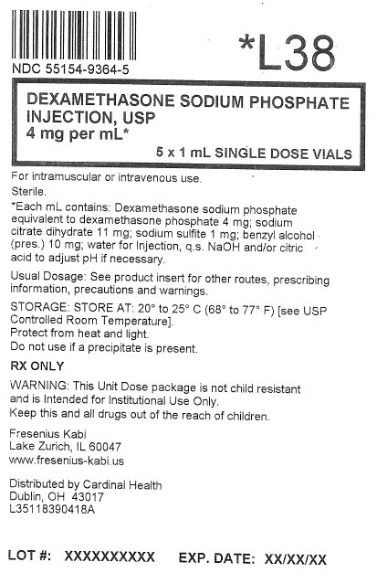 The following 3 images provide visual information about the product associated with Dexamethasone Sodium Phosphate NDC 55154-9364 by Cardinal Health 107, Llc, such as packaging, labeling, and the appearance of the drug itself. This resource could be helpful for medical professionals, pharmacists, and patients seeking to verify medication information and ensure they have the correct product.