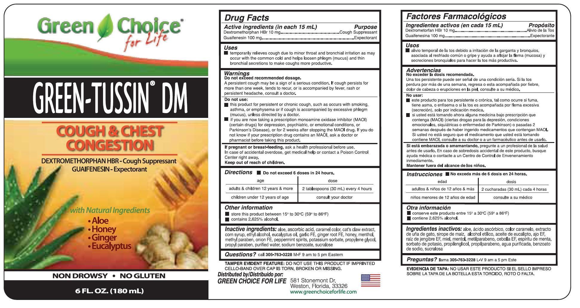 The following image provide visual information about the product associated with Green Tussin DM NDC 55287-100 by Green Choice For Life, such as packaging, labeling, and the appearance of the drug itself. This resource could be helpful for medical professionals, pharmacists, and patients seeking to verify medication information and ensure they have the correct product.