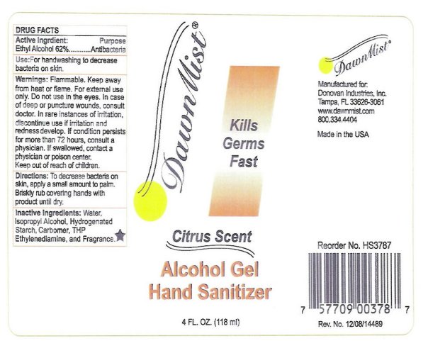 The following image provide visual information about the product associated with Dawnmist Alcohol Gel Hand Sanitizer NDC 55504-3736 by Donovan Industries, Inc., such as packaging, labeling, and the appearance of the drug itself. This resource could be helpful for medical professionals, pharmacists, and patients seeking to verify medication information and ensure they have the correct product.