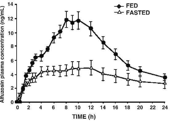 As illustrated in Figure 1, the extent of absorption is 50% lower under fasting conditions. Therefore, alfuzosin HCl extended-release tablets should be taken with food and with the same meal each day [see Dosage and Administration (2)].