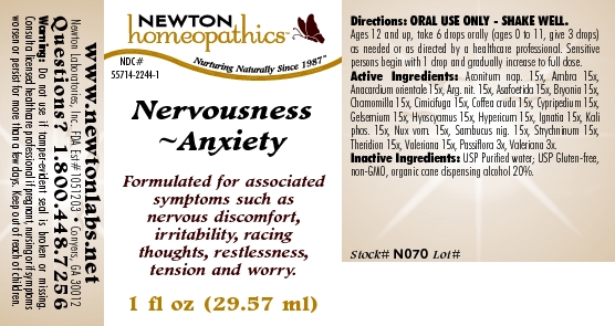 The following image provide visual information about the product associated with Nervousness - Anxiety NDC 55714-2244 by Newton Laboratories, Inc., such as packaging, labeling, and the appearance of the drug itself. This resource could be helpful for medical professionals, pharmacists, and patients seeking to verify medication information and ensure they have the correct product.