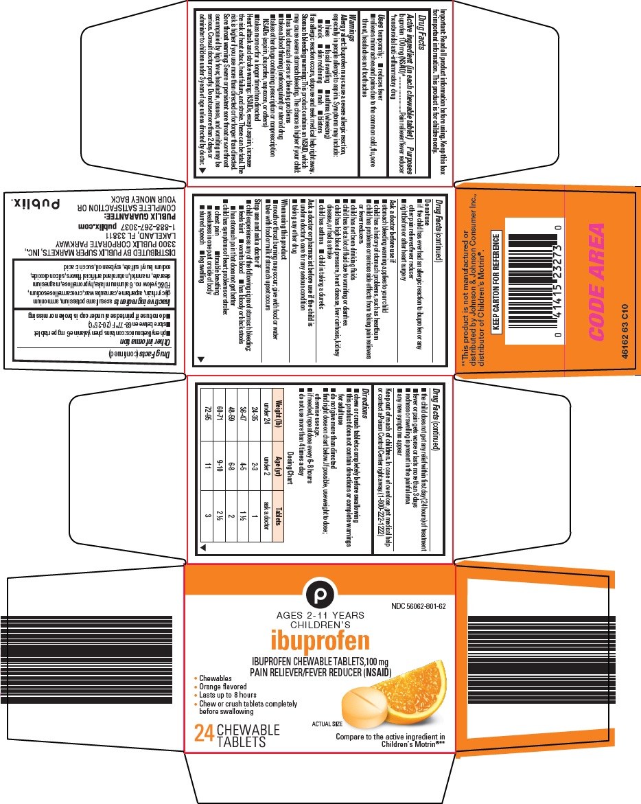 The following image provide visual information about the product associated with Childrens Ibuprofen NDC 56062-801 by Publix Super Markets Inc, such as packaging, labeling, and the appearance of the drug itself. This resource could be helpful for medical professionals, pharmacists, and patients seeking to verify medication information and ensure they have the correct product.