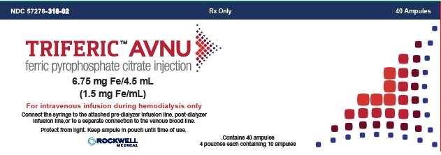 The following 2 images provide visual information about the product associated with Triferic Avnu NDC 57278-318 by Rockwell Medical Inc., such as packaging, labeling, and the appearance of the drug itself. This resource could be helpful for medical professionals, pharmacists, and patients seeking to verify medication information and ensure they have the correct product.