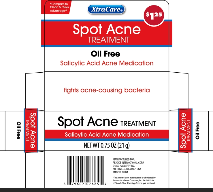 The following 2 images provide visual information about the product associated with Spot Acne Treatment Oil Free 0.75oz NDC 57337-168 by Rejoice International Corp., such as packaging, labeling, and the appearance of the drug itself. This resource could be helpful for medical professionals, pharmacists, and patients seeking to verify medication information and ensure they have the correct product.