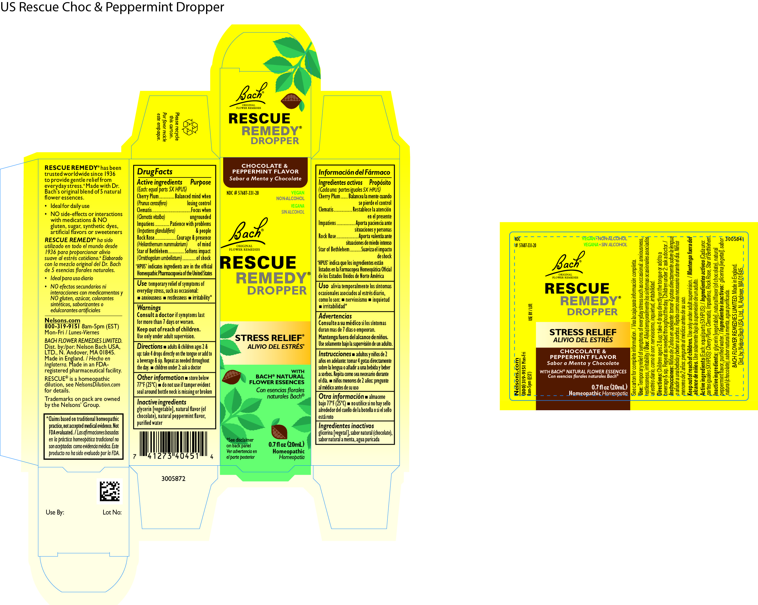 This -generated text provides information about the US Rescue Choc & Peppermint Dropper, a product from the RESCUE REMEDY® line. It contains a natural blend of flower essences developed by Dr. Bach to provide gentle relief from everyday stress since 1936. The product is touted as ideal for daily use without side effects or interactions with medications, and it does not contain gluten, sugar, synthetic dyes, artificial flavors, or sweeteners. The text delves into the active ingredients, purpose, directions for use, warnings, and other details related to this stress relief product. It emphasizes its homeopathic nature and instructions for adults and children. The dropper is available in a chocolate and peppermint flavor.*