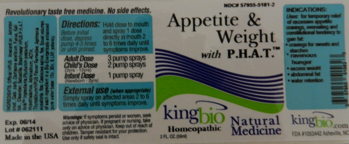 The following image provide visual information about the product associated with Appetite And Weight With P.h.a.t. NDC 57955-5181 by King Bio Inc., such as packaging, labeling, and the appearance of the drug itself. This resource could be helpful for medical professionals, pharmacists, and patients seeking to verify medication information and ensure they have the correct product.
