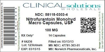 The following 5 images provide visual information about the product associated with Nitrofurantoin Monohydrate/ Macrocrystalline NDC 58118-0303 by Clinical Solutions Wholesale, such as packaging, labeling, and the appearance of the drug itself. This resource could be helpful for medical professionals, pharmacists, and patients seeking to verify medication information and ensure they have the correct product.
