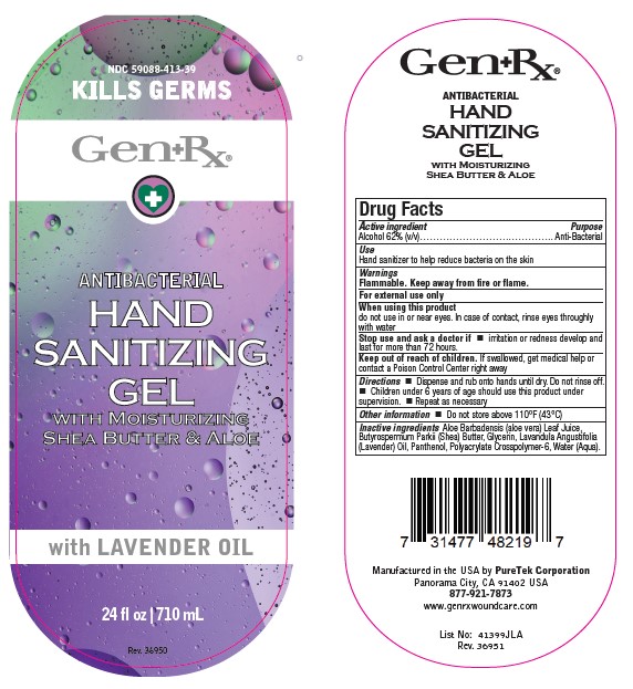 The following 3 images provide visual information about the product associated with Hand Sanitizing With Lavender Oil NDC 59088-413 by Puretek Corporation, such as packaging, labeling, and the appearance of the drug itself. This resource could be helpful for medical professionals, pharmacists, and patients seeking to verify medication information and ensure they have the correct product.