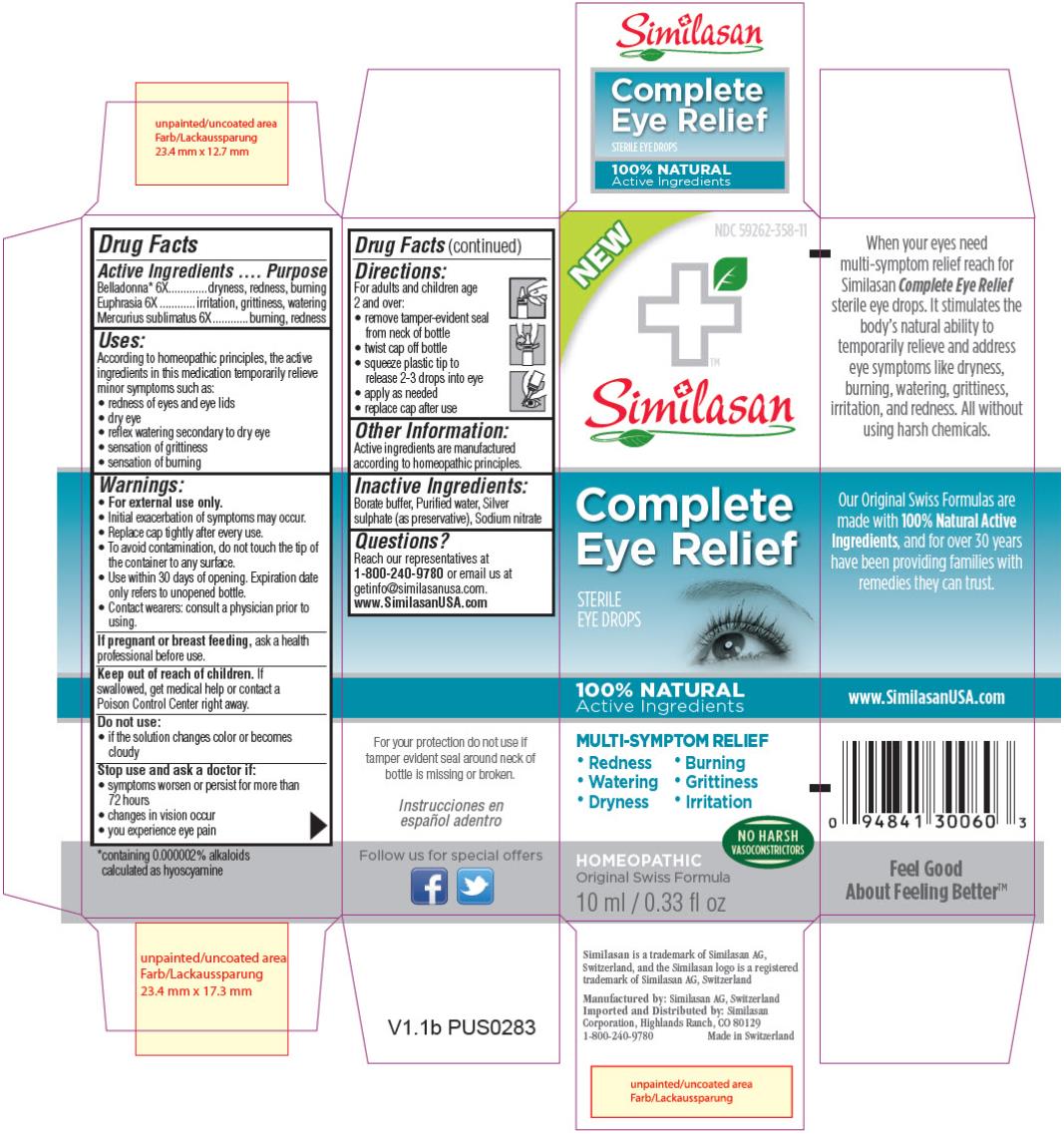 PRINCIPAL DISPLAY PANEL NEW NDC 59262-358-11 Similasan Complete Eye Relief STERILE EYE DROPS 10 mL/0.33 fl oz - complete eye relief 1