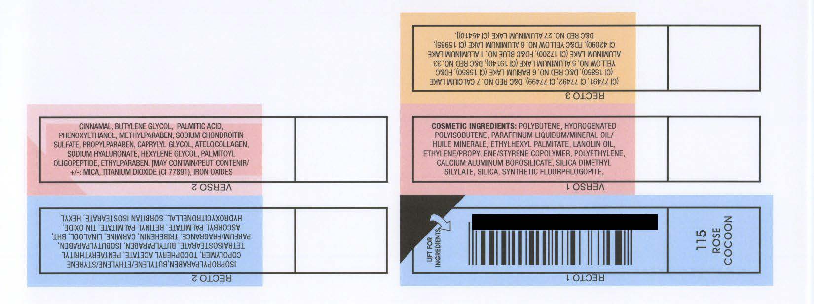 The following 3 images provide visual information about the product associated with Rimmel London Moisture Renew Lipgloss - Rose Cocoon (115) NDC 59351-0303 by Lancaster S.a.m., such as packaging, labeling, and the appearance of the drug itself. This resource could be helpful for medical professionals, pharmacists, and patients seeking to verify medication information and ensure they have the correct product.