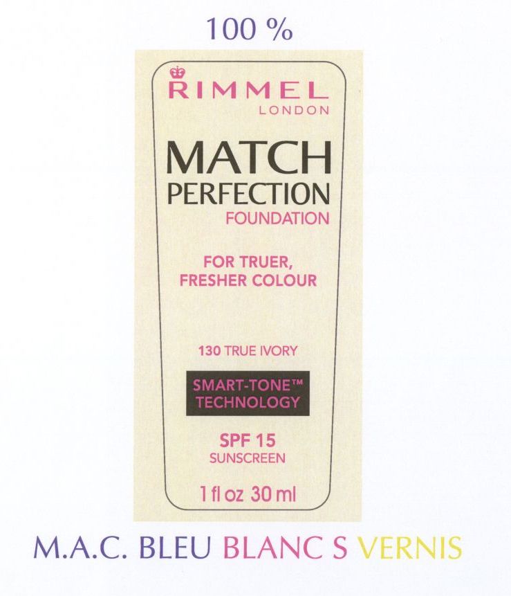 Rimmel London Match Perfection Foundation - True Ivory (130) Product Label