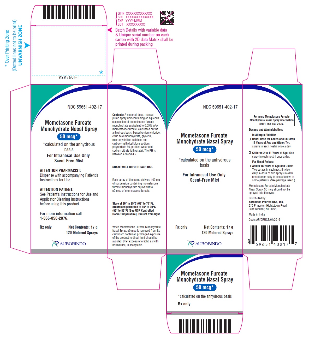General information about the safe and effective use of mometasone furoate monohydrate nasal spray. Medicines are sometimes prescribed for conditions that are not listed in a Patient Information leaflet. Do not use mometasone furoate monohydrate nasal spray for a condition for which it was not prescribed. Do not give mometasone furoate monohydrate nasal spray to other people even if they have the same symptoms you have. It may harm them. You can ask your healthcare provider or pharmacist for information about mometasone furoate monohydrate nasal spray that is written for health professionals. |