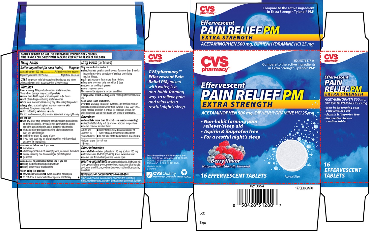 The following image provide visual information about the product associated with Cvs Effervescent Pain Relief Pm NDC 59779-577 by Cvs Pharmacy, such as packaging, labeling, and the appearance of the drug itself. This resource could be helpful for medical professionals, pharmacists, and patients seeking to verify medication information and ensure they have the correct product.