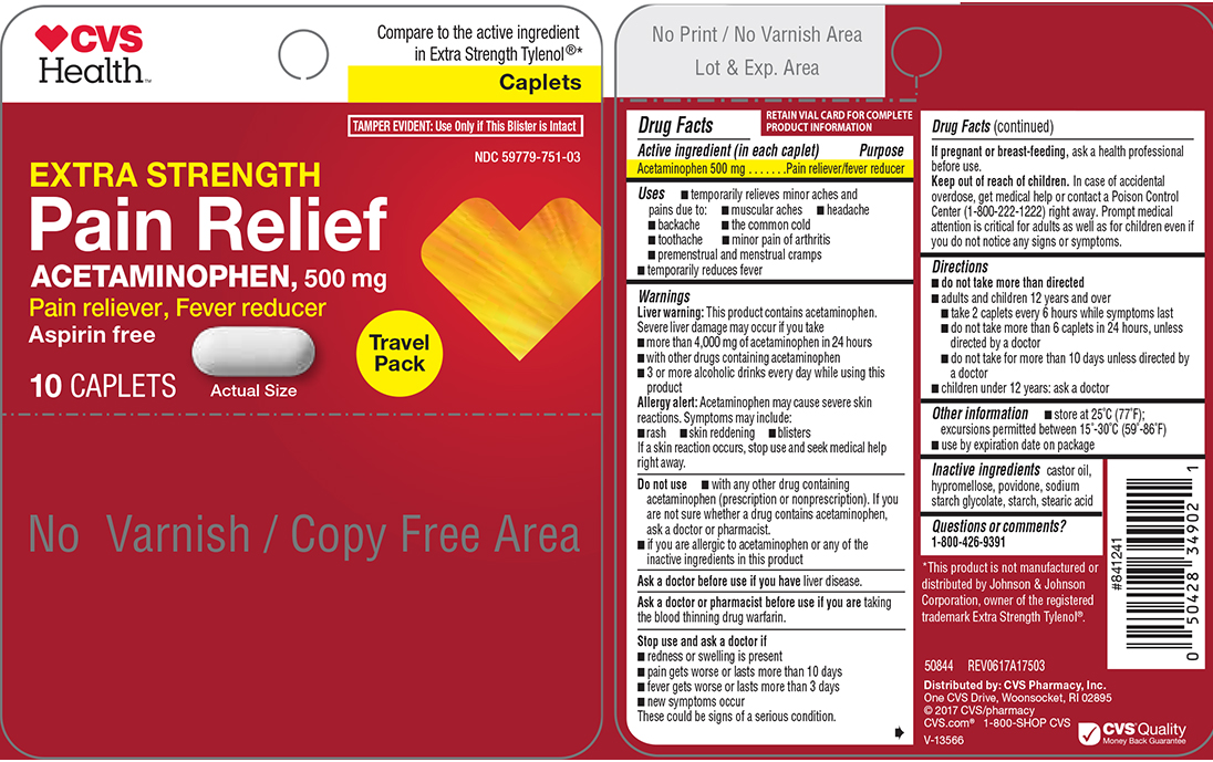 The following image provide visual information about the product associated with Pain Relief Extra Strength NDC 59779-751 by Cvs Pharmacy, such as packaging, labeling, and the appearance of the drug itself. This resource could be helpful for medical professionals, pharmacists, and patients seeking to verify medication information and ensure they have the correct product.