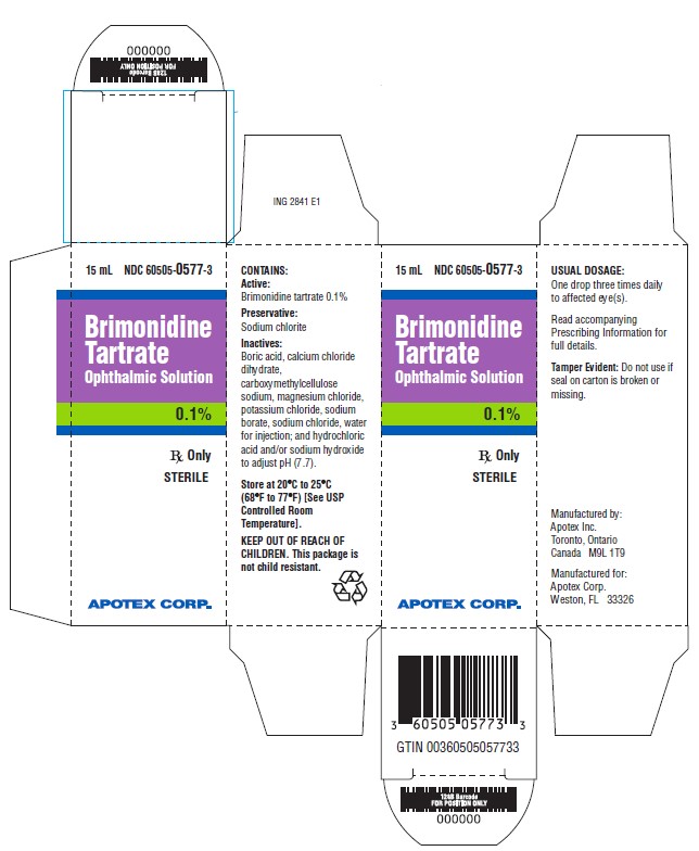 The following 7 images provide visual information about the product associated with Brimonidine Tartrate NDC 60505-0577 by Apotex Corp., such as packaging, labeling, and the appearance of the drug itself. This resource could be helpful for medical professionals, pharmacists, and patients seeking to verify medication information and ensure they have the correct product.