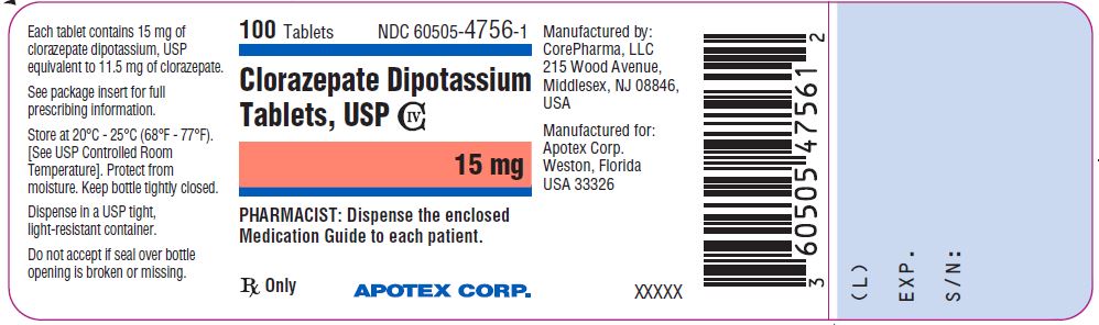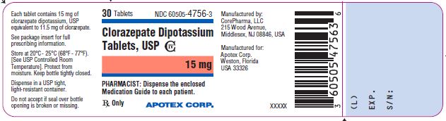 The following 13 images provide visual information about the product associated with Clorazepate Dipotassium NDC 60505-4756 by Apotex Corp., such as packaging, labeling, and the appearance of the drug itself. This resource could be helpful for medical professionals, pharmacists, and patients seeking to verify medication information and ensure they have the correct product.