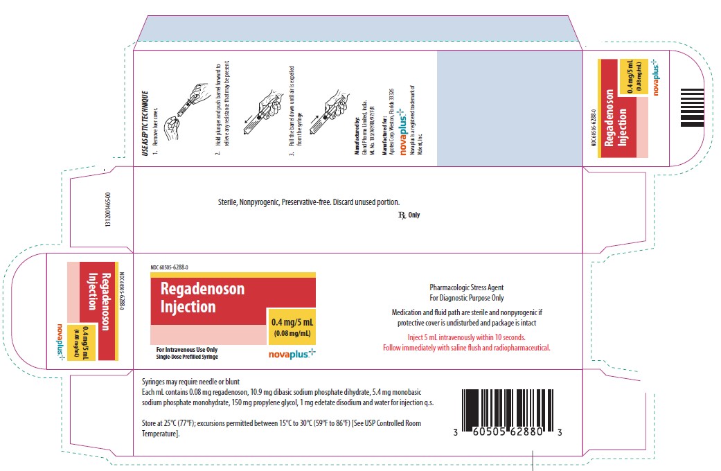 The following 4 images provide visual information about the product associated with Regadenoson NDC 60505-6288 by Apotex Corp., such as packaging, labeling, and the appearance of the drug itself. This resource could be helpful for medical professionals, pharmacists, and patients seeking to verify medication information and ensure they have the correct product.