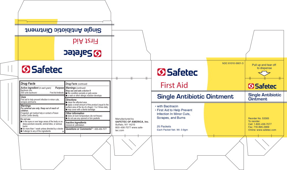 The following 4 images provide visual information about the product associated with Single Antibiotic With Bacitracin NDC 61010-5601 by Safetec Of America, such as packaging, labeling, and the appearance of the drug itself. This resource could be helpful for medical professionals, pharmacists, and patients seeking to verify medication information and ensure they have the correct product.