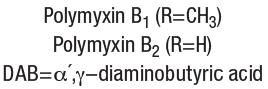 Polymyxin B is a type of polypeptide antibiotic that consists of two variations: Polymyxin B with R group as CH3, and Polymyxin B with R group as H. It contains DAB (0.2, y-diaminobutyric acid) which contributes to its antibacterial properties.*